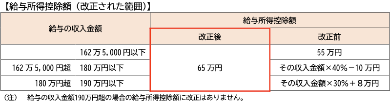 令和7年度税制改正により、給与所得控除の最低保障額が10万円引き上げとなりました。
